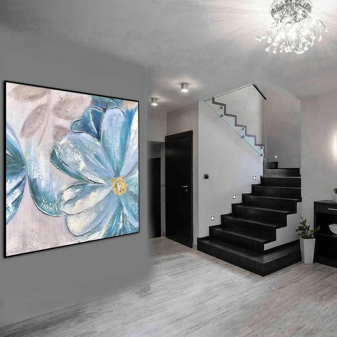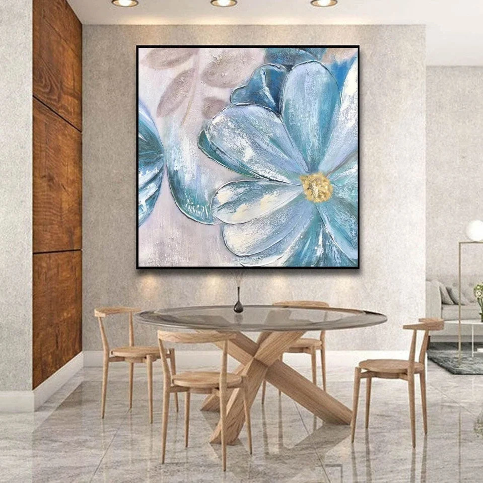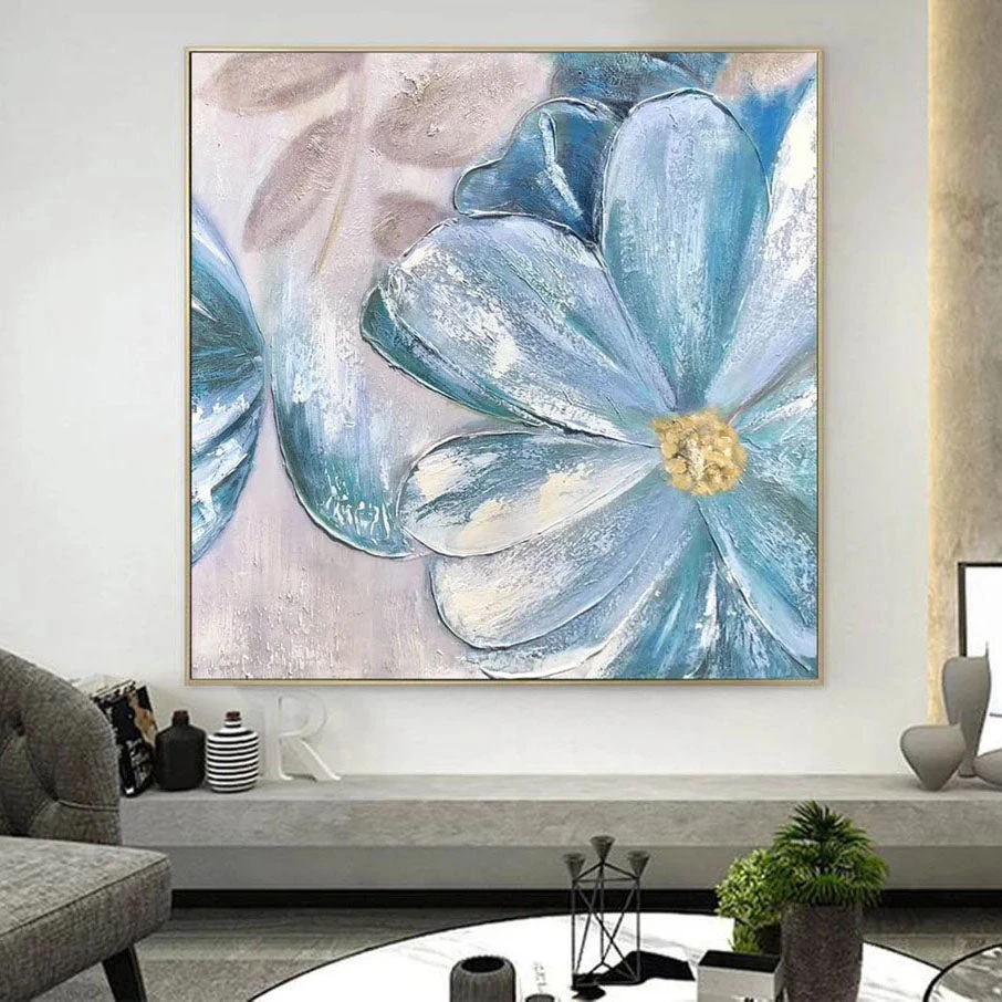 This artwork brings a gentle bloom to life with textured petals and calming blue tones. A timeless reminder of nature’s serene beauty, it radiates tranquility and grace. Perfect for enhancing any space, it offers a blend of sophistication and calm.