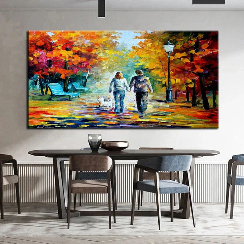 Inspired by the vibrant work of Leonid Afremov, this rich composition fills any room with bright colors. Step right into the welcoming canvas and start walking along in the most beautiful season of them all!