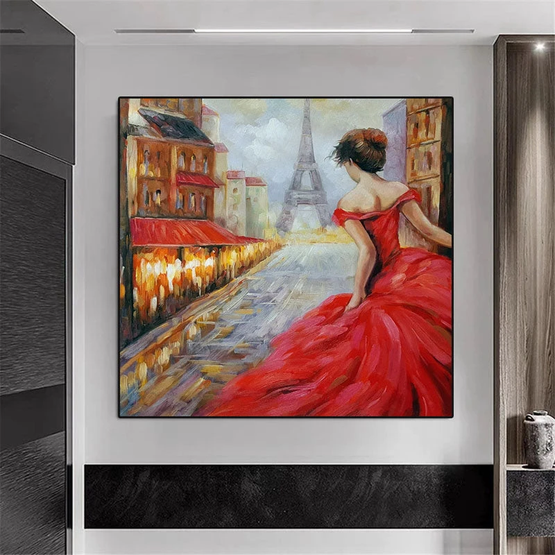 Inspired by the most famous street in Paris, this realism-style artwork is here to steal your heart! With lush red colors and a stunning composition with the Eiffel Tower at its center, this piece brings you very close to the real Paris!