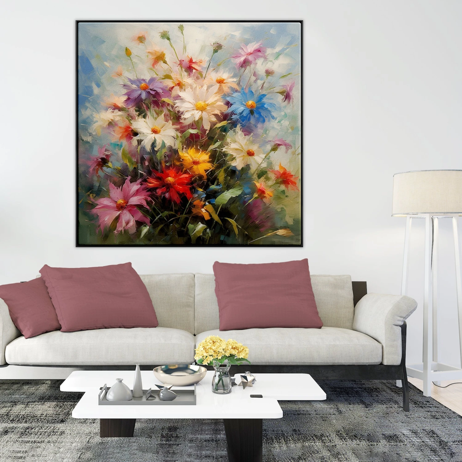 Experience the flourish of spring in “Blooming Time.” The canvas comes alive with the vibrant charm of blossoms in their prime, celebrating the coming of the new season. Create a colorful atmosphere anywhere with this piece!