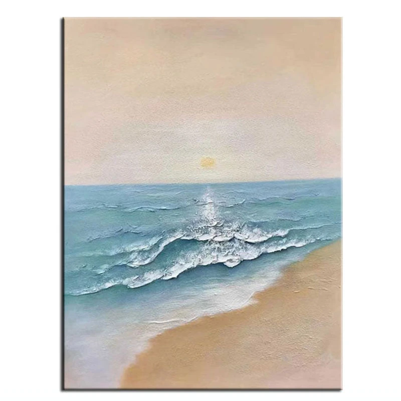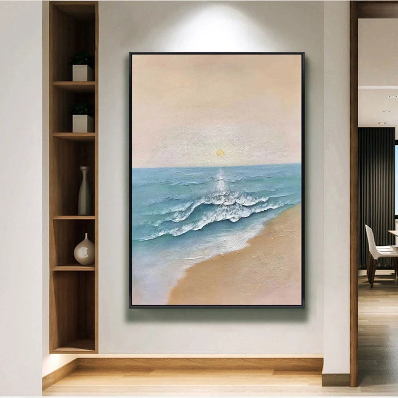 Feeling rushed? Or a little bit stressed out? Let these beautiful, calming waves bring you to ease. You only need the sun, beach, and the ocean to calm your mind. The stunning composition and subtle colors make this painting suited for any home interior!