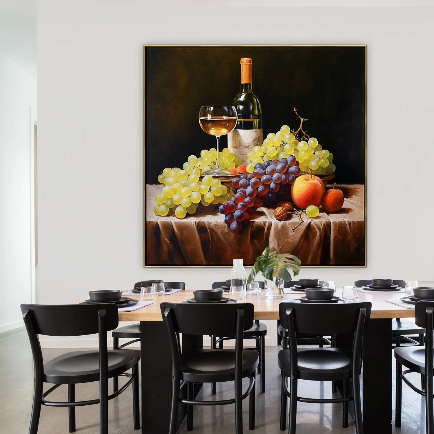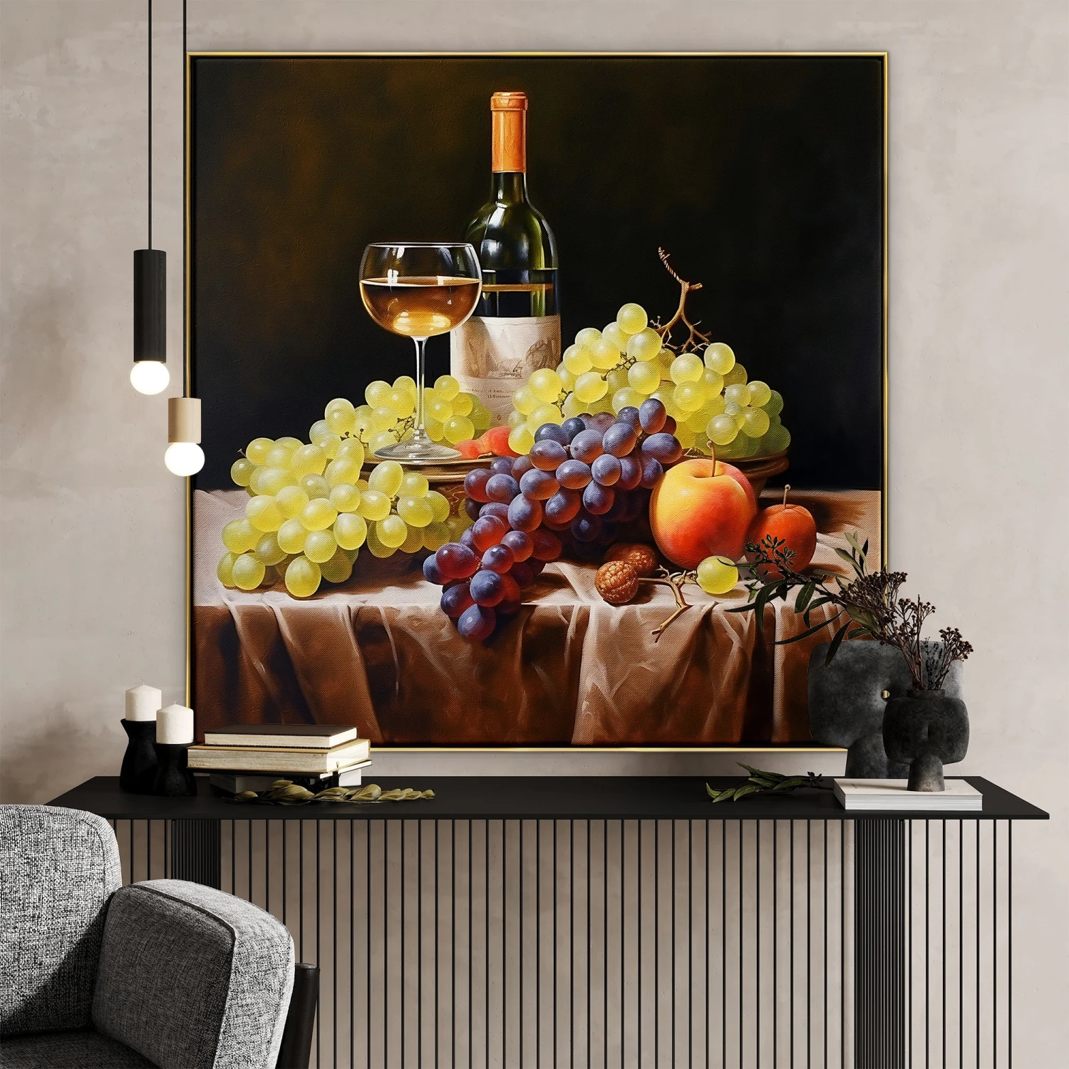 In “Chardonnay,” elegance takes center stage. This realistic portrayal of white wine in a glass, surrounded by plump grapes, brings a touch of refinement to your space. Every detail is a toast to the finer things in life.