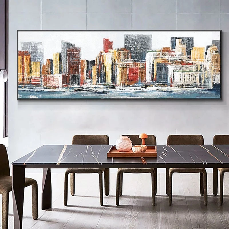 Chicago is a painting that captures the essence of the Windy City. The skyline and waterfront are both prominently featured, showcasing the city’s rough beauty.