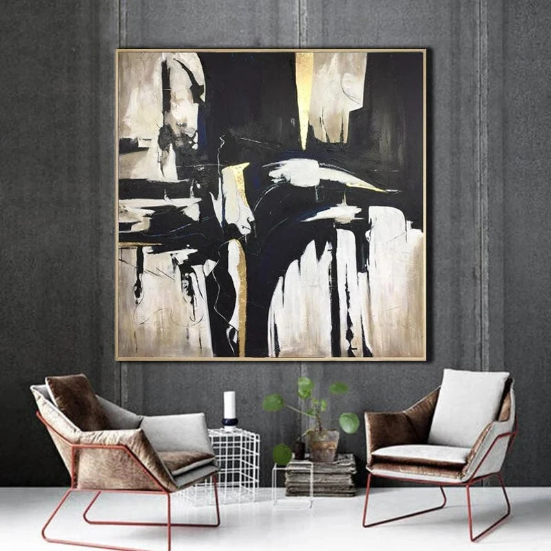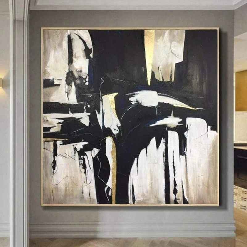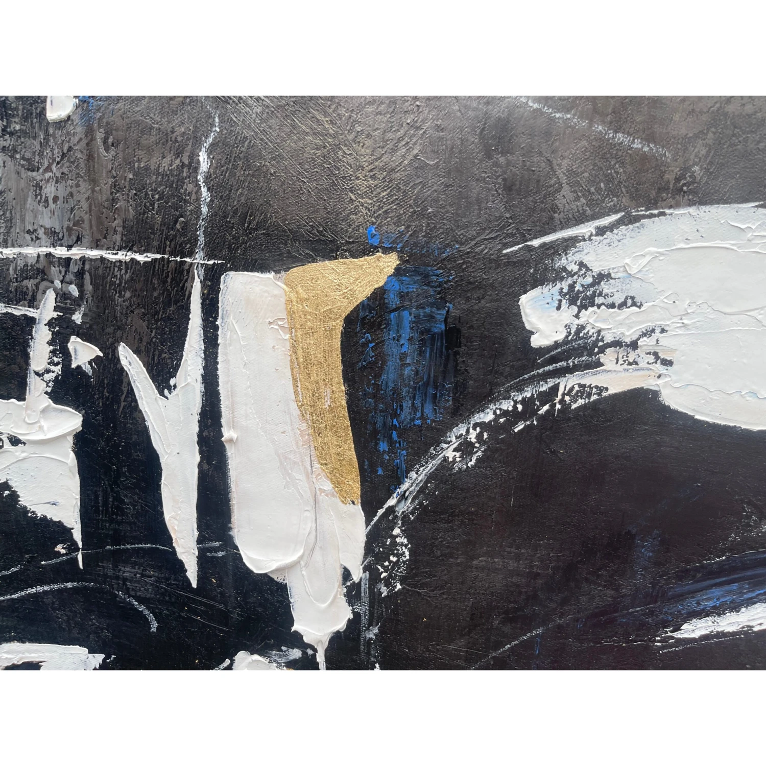 Worlds collide in this true collision of paint! The dynamic brushstrokes give the piece a sense of movement, making it a true eye-catcher! The use of mainly subtle colors makes this piece suited for any space!