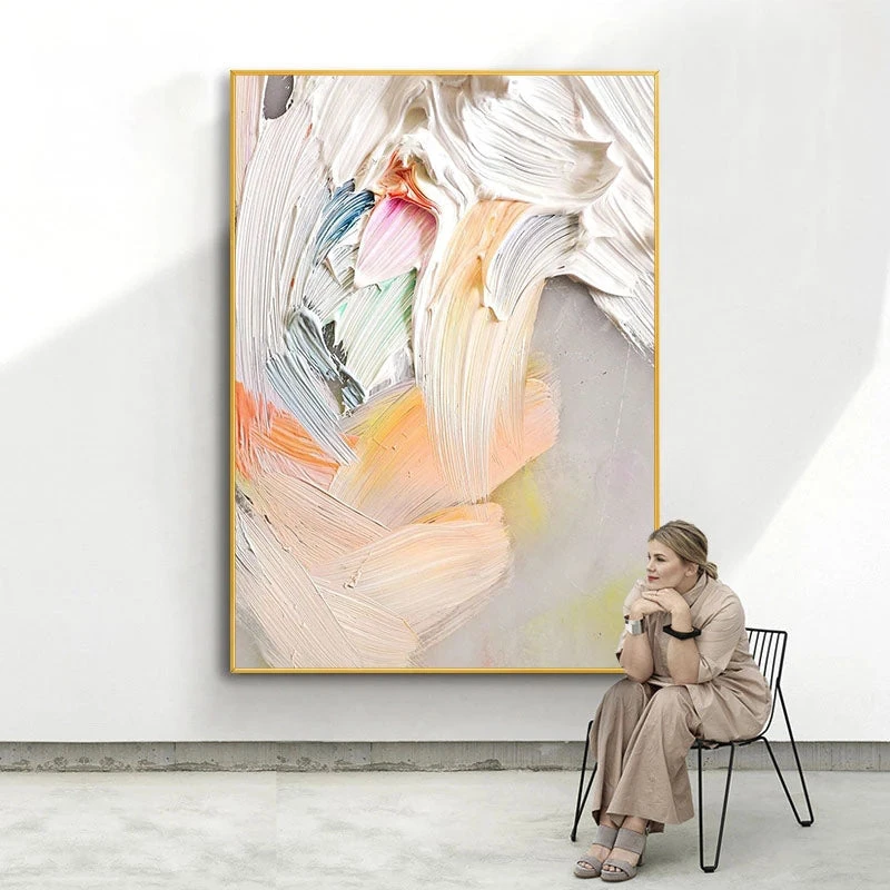 With a unique painting style and lush, vibrant colors, this painting ‘Cream Petals’ sure is a sight to behold! The rich strokes of paint create a dynamic flow of colors. And its sunny appearance makes every space or room shine bright!
