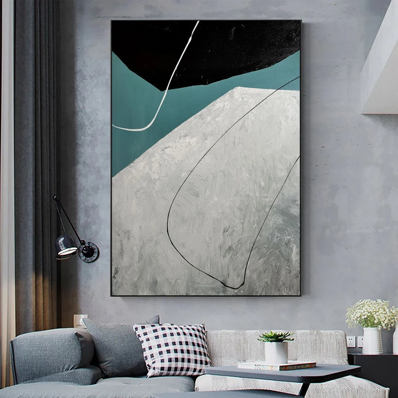 Flight brings a sense of movement and freedom to your home. The abstract design and harmonious colors make this painting a striking addition to any home interior.