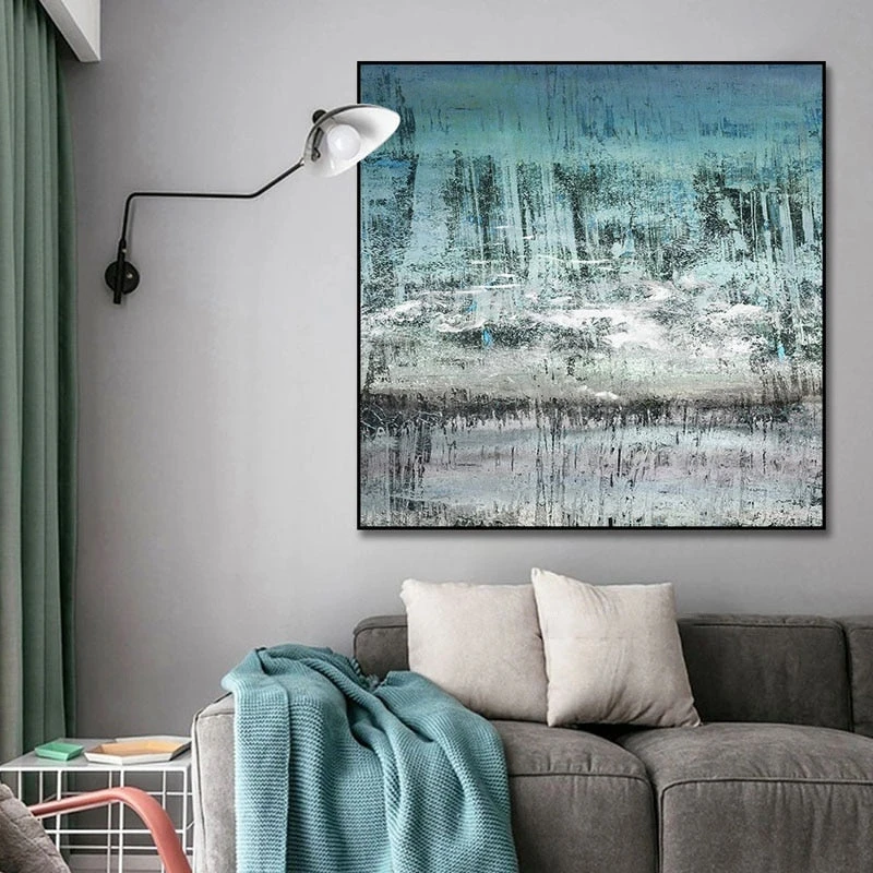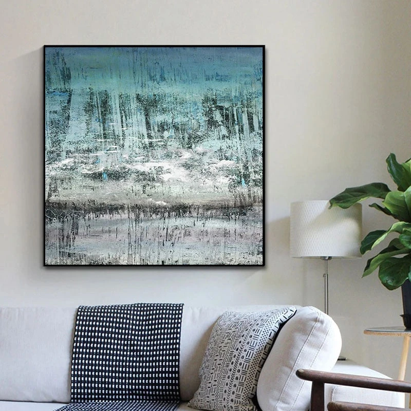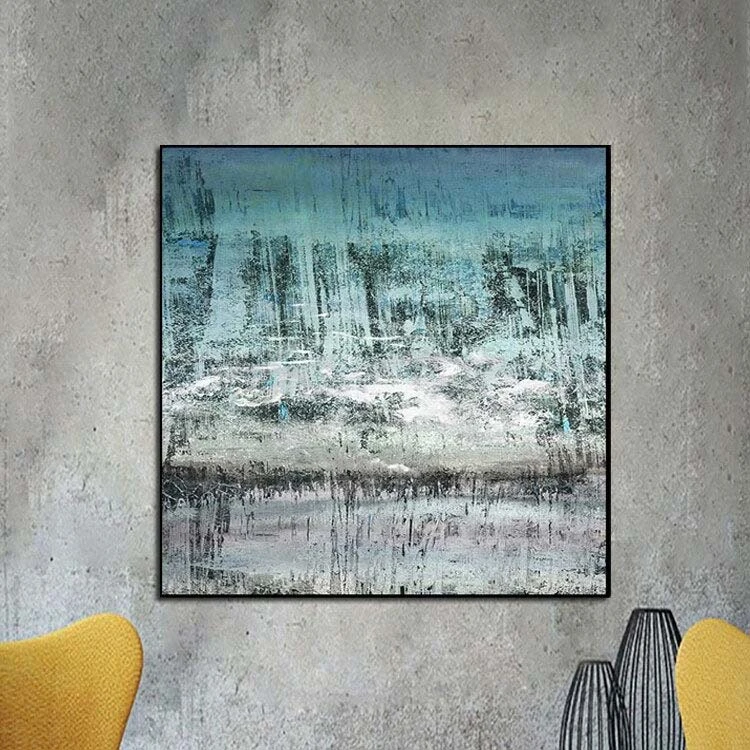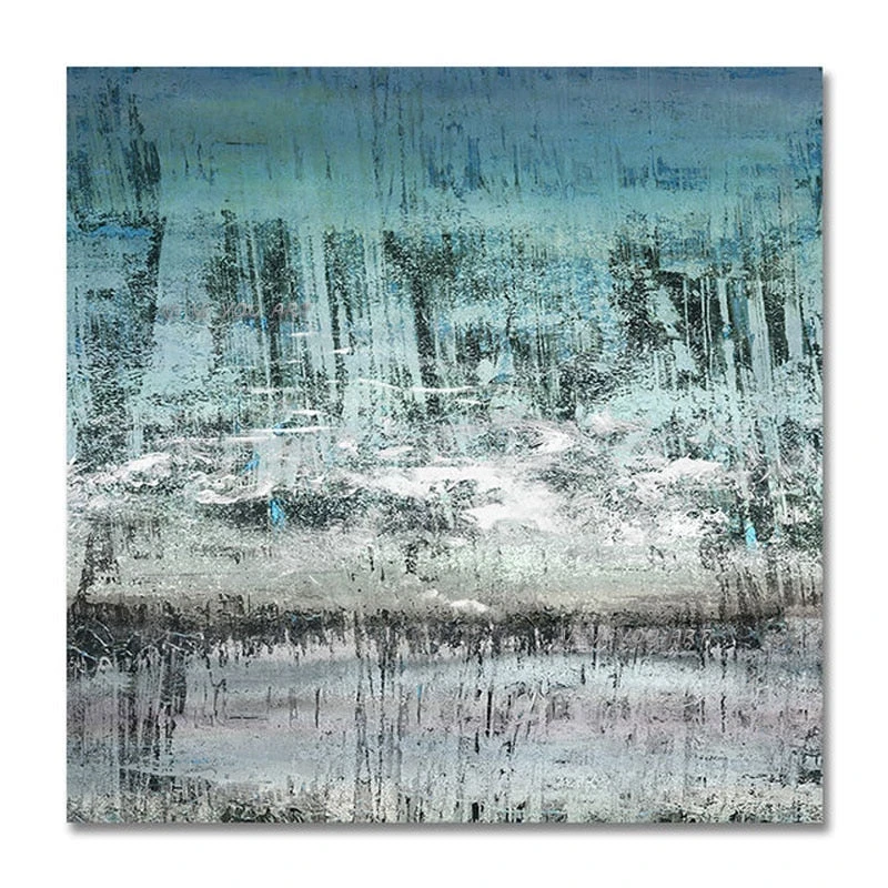 Abstract winter never looked so good. The textured technique creates a unique frozen effect, blending icy blues and grays into a stunning visual. It’s an artwork that’s as refreshing as a cold morning.