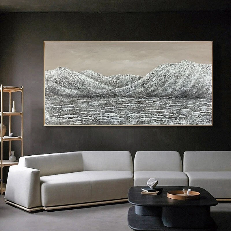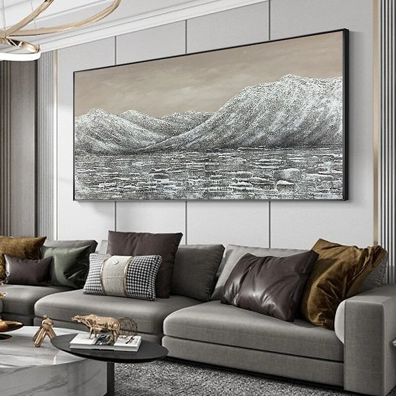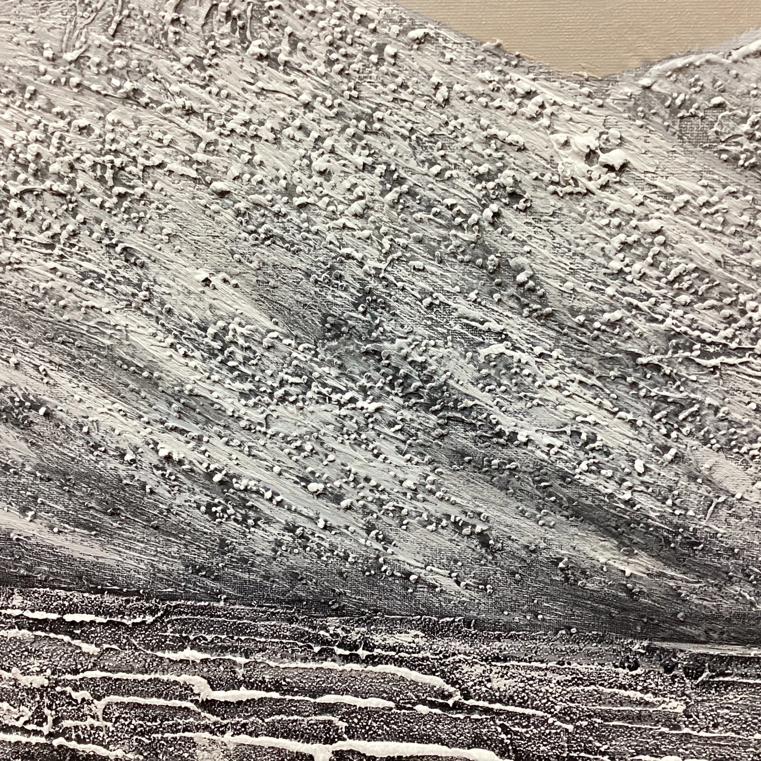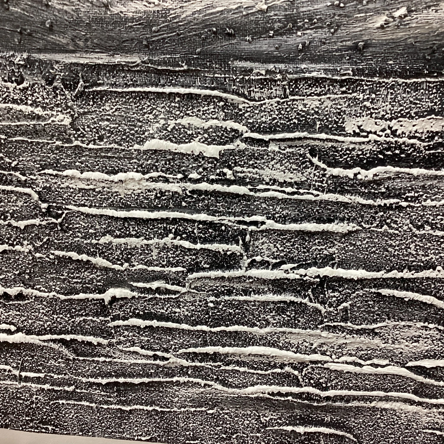 This painting features a glorious glacier in the middle of an icy ocean. The cold composition is mostly black and white, with a few bright spots of color. Because of the beautiful details, you can almost feel the cold wind blowing in your face!