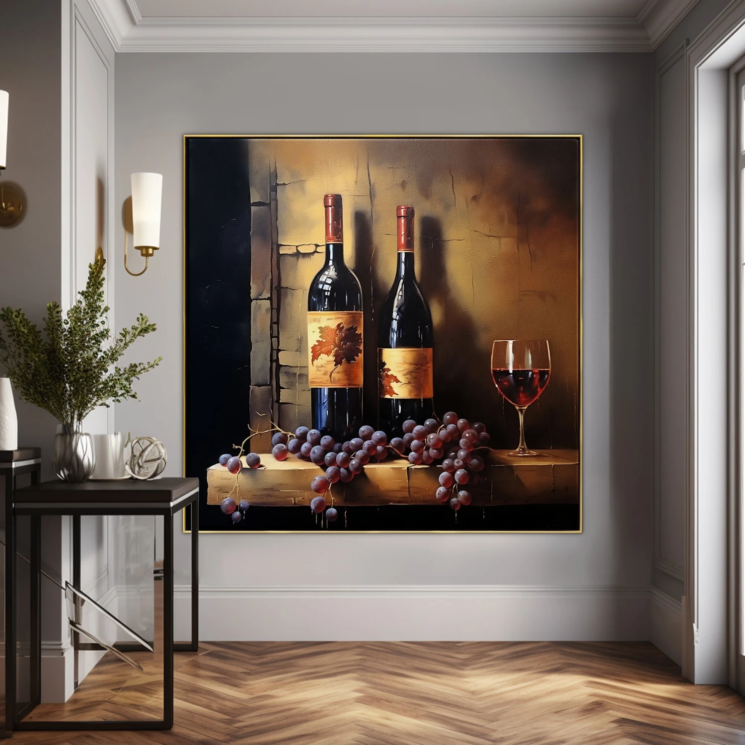 In Grenache, you’re invited to a symphony of taste and aesthetics. Two wine bottles and ripe grapes invoke a sense of nostalgia, a tribute to the timeless pleasure of fine wine and the beauty of the vine.