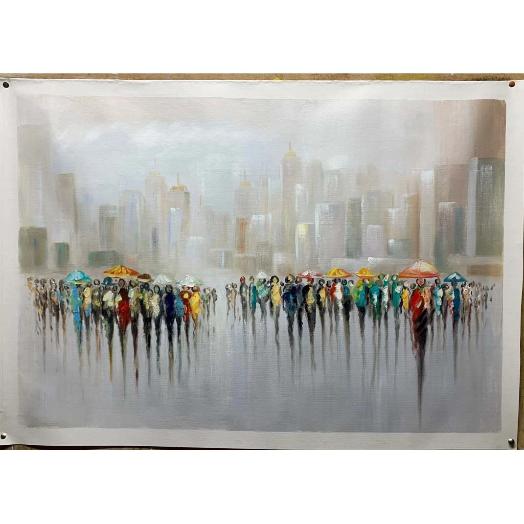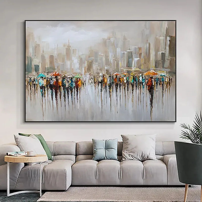 The unbelievable tall buildings, the colorful umbrellas and the thick fog, this is Hong Kong. Truly a unique city on our earth, and displayed impressively in this impressionistic art piece. Get lost in the endless streets or the enormous plaza’s with this grand artwork!
