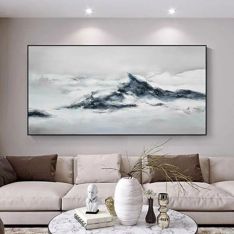 We are floating on cloud nine with the beauty of this artwork! ‘In the Clouds’ is a modern, impressionistic artwork that displays mighty mountains towering above a soft blanket of clouds. With beautiful contrasts, you can get lost in this piece for hours!