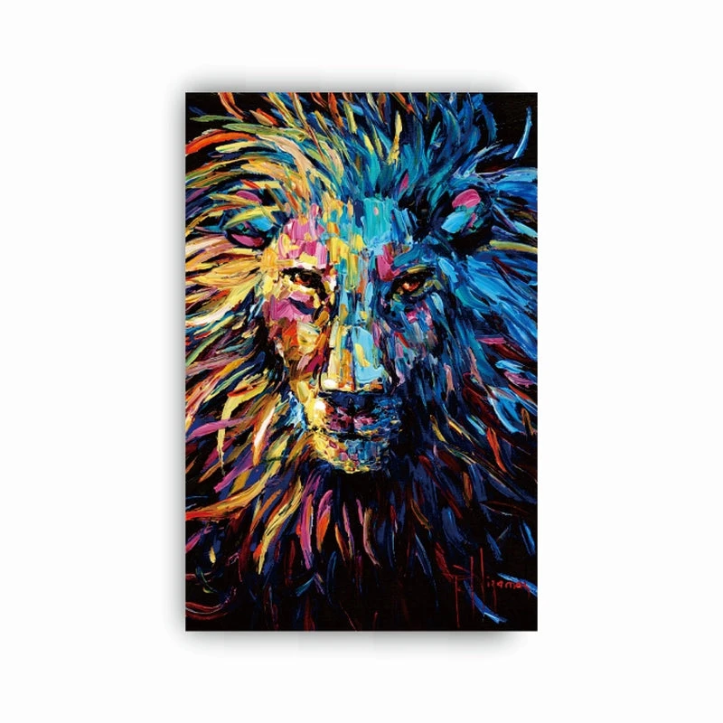 In “”Legendary Lioness,”” a mesmerizing portrait unfolds with unique colors. Colors shift from soft on the left to bold on the right, showing her strength and grace. The artist’s strokes bring out a powerful elegance, making the canvas a vivid tribute to the untamed beauty of the wild.