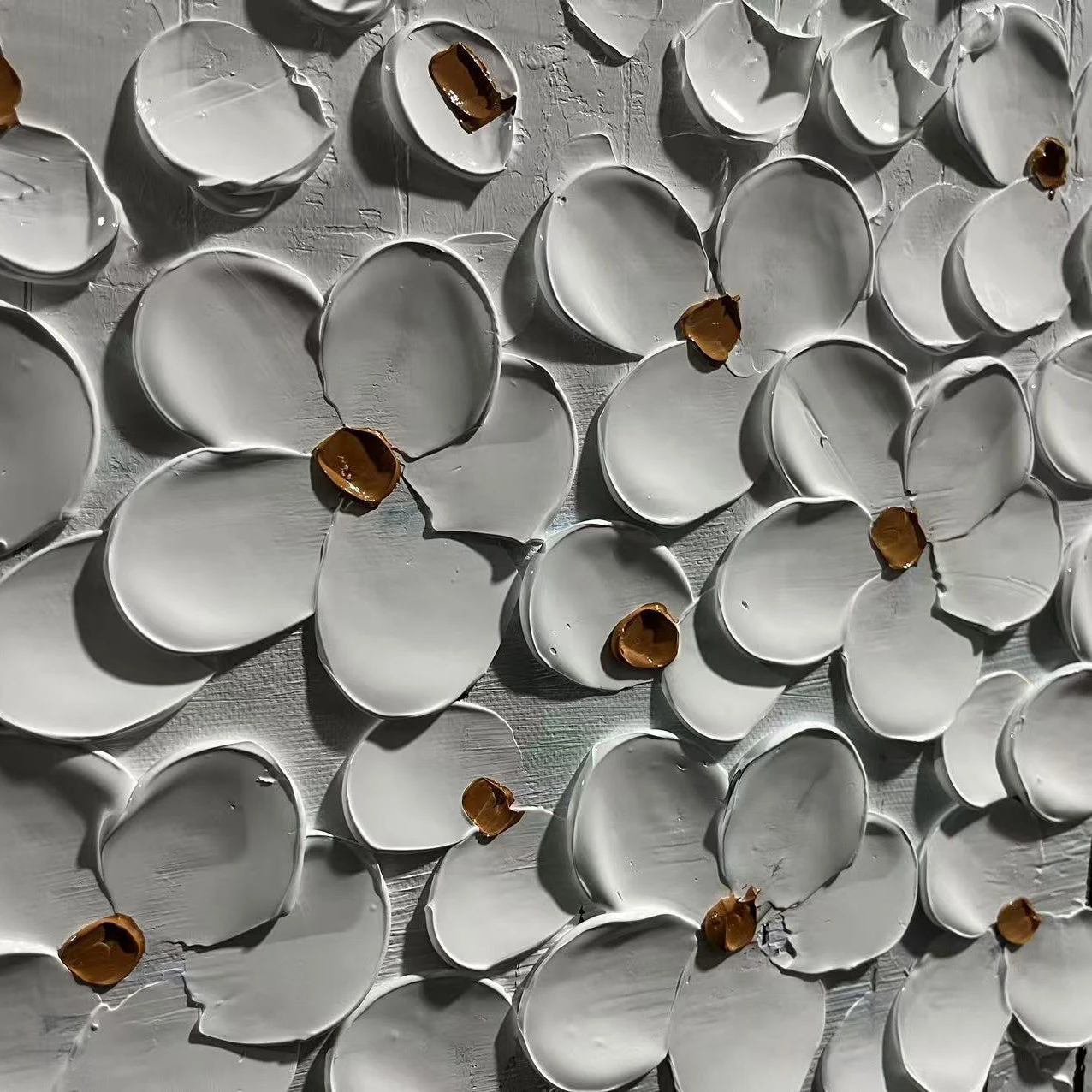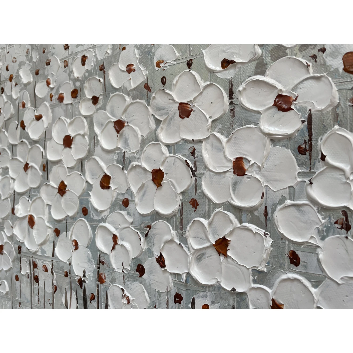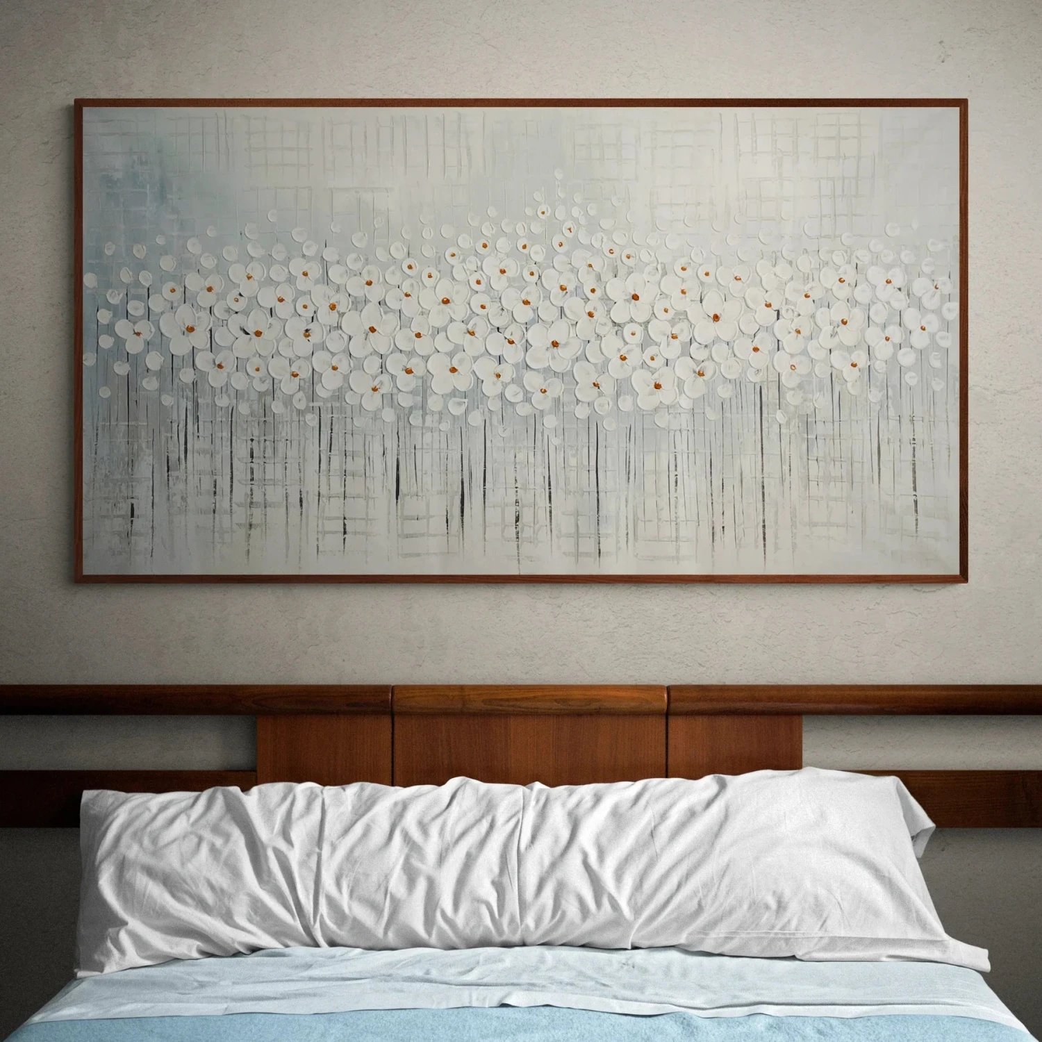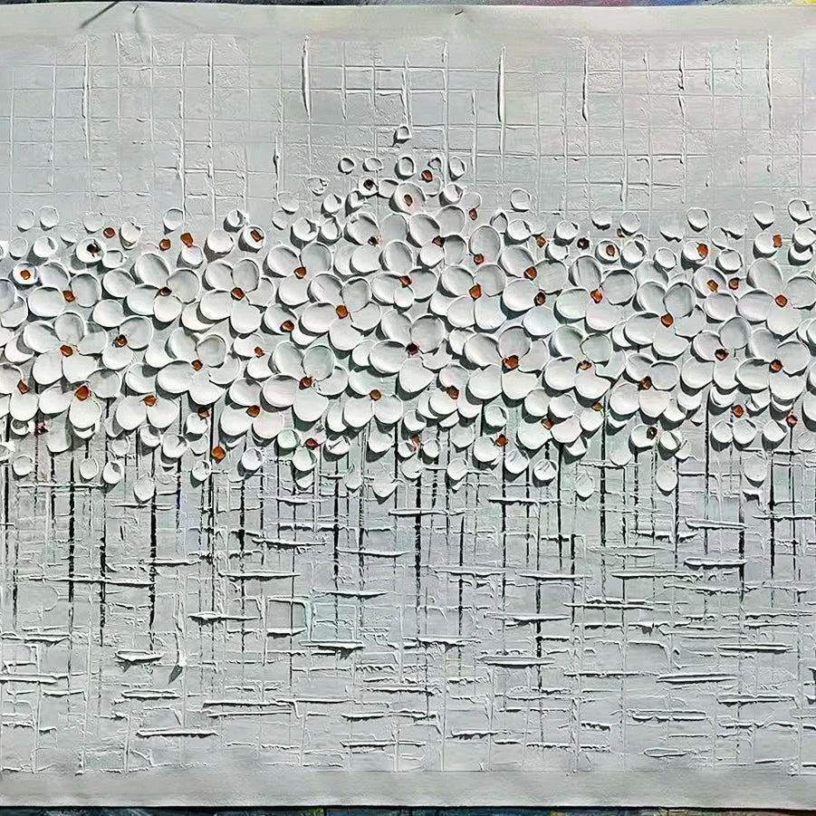 Lily Garden is a beautiful painting with white lilies that almost pop off the canvas. This is due to the special painting technique used, which creates a soft and elegant atmosphere wherever it is portrayed.