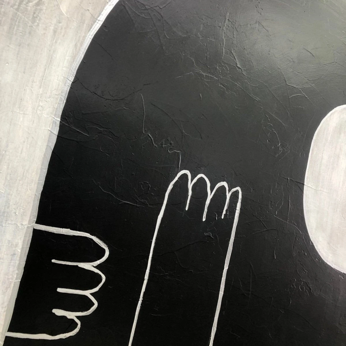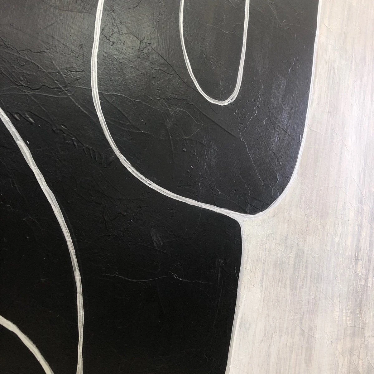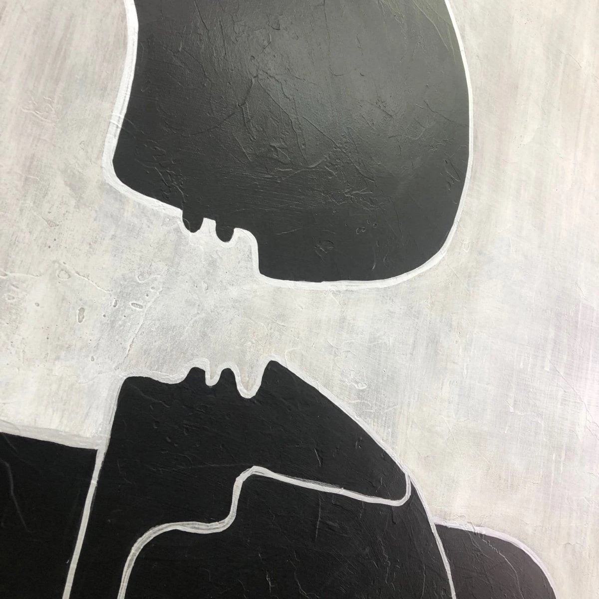 This unique black and white artwork depicts two characters hugging and almost kissing in a playful, cartoony style. Their intertwined pose captures deep love and connection, making it a perfect piece to celebrate love in any space.