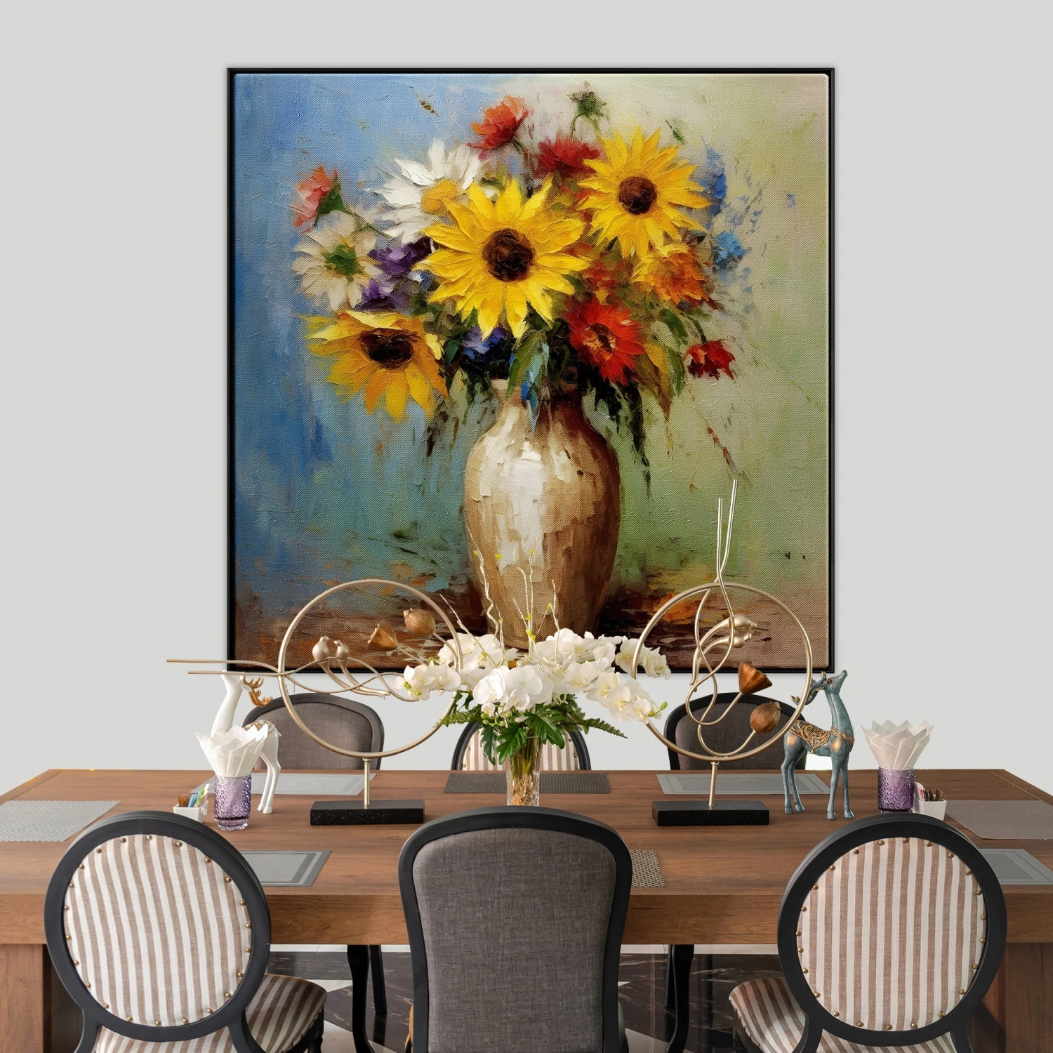 With a fresh, modern take on a classical compoistion, this piece just put a smile on our faces! The lovely texture and surprising colors makes this piece perfect for any type of home interior!