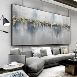 Step into a world where the mountains gleam with the richness of gold. This painting’s luxurious tones and serene landscape make it an ideal piece for those who appreciate the finer things in life, both in nature and in art.