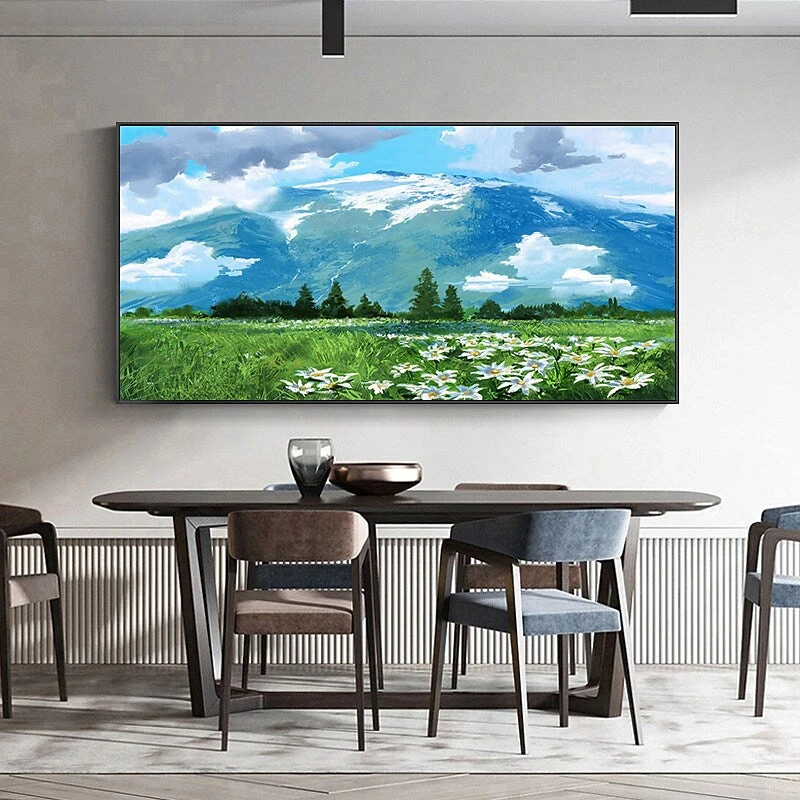 You can almost smell the fresh air and feel the gentle mountain winds when you look at this fantastic art piece! With vibrant colors and an inviting composition, this painting will create an amazing atmosphere anywhere!