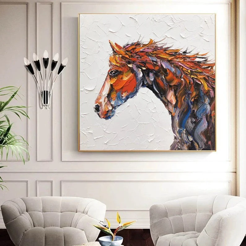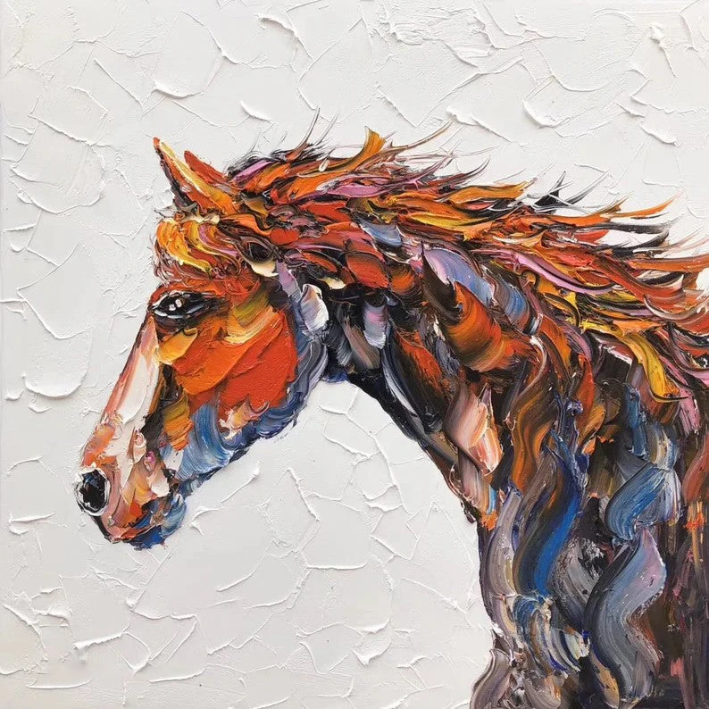 Meet Nicholas, the proud and fiery soul of the stable. Painted with bold strokes and glowing colors, he carries the spirit of wind and wild fields. This isn’t just a horse. It’s a character, full of quiet strength and fierce charm. Nicholas is ready to run, even on your wall.
