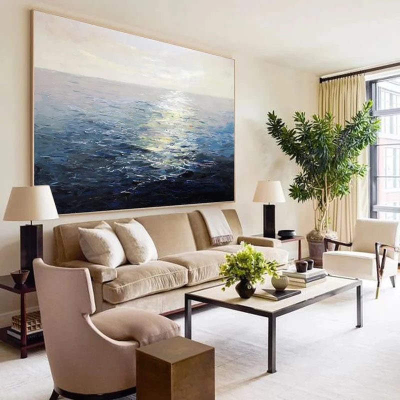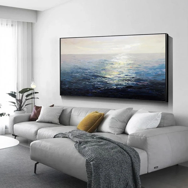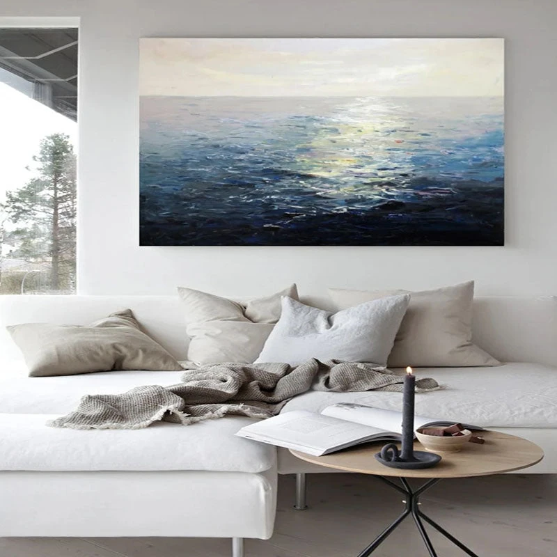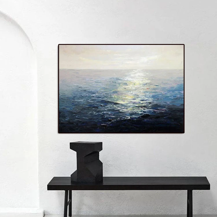 Glittering sunlight reflecting beautifully on the dark, blue sea… What a sight to behold! This fantastic realism artwork portrays the astonishing beauty of an idyllic ocean sunrise! Its realistic color scheme makes this piece suited for many types of home interiors!