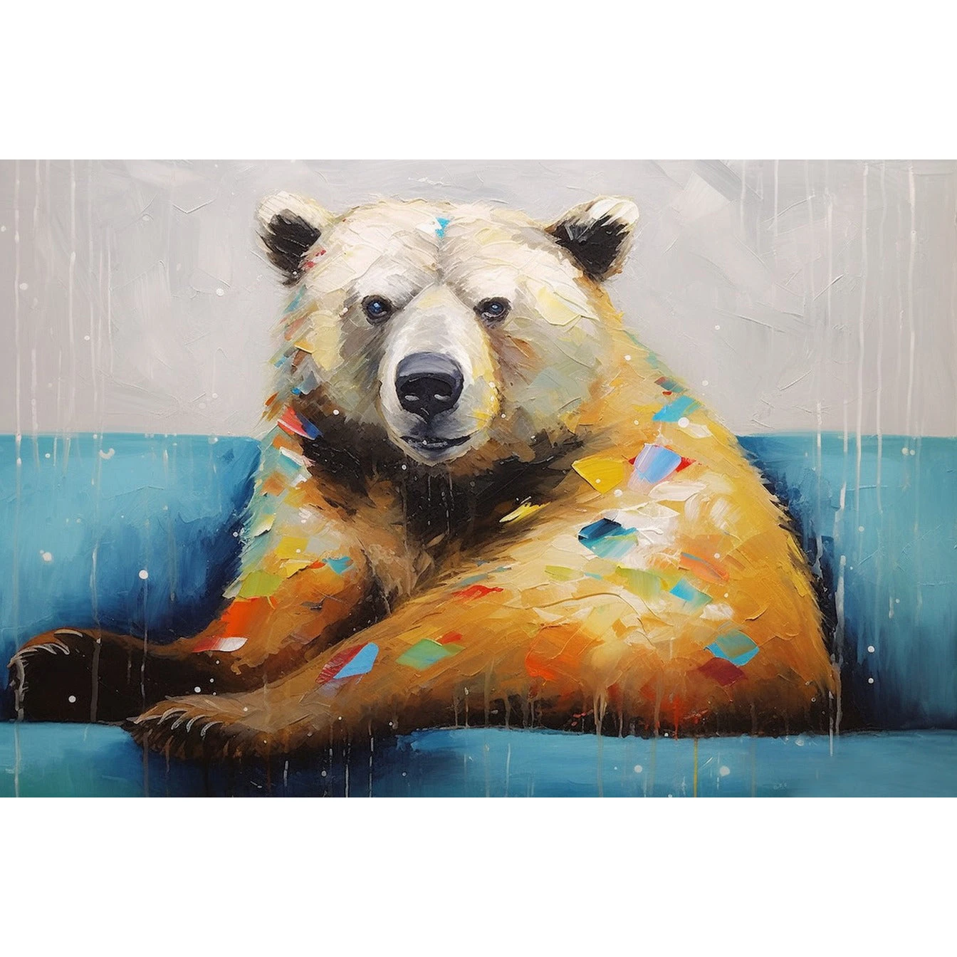 Otto the Bear steals the show with his relaxed vibe and vibrant splashes of color. This stunning artwork is a playful yet elegant addition that will make any space feel both bold and inviting. Otto is just a natural at modelling!