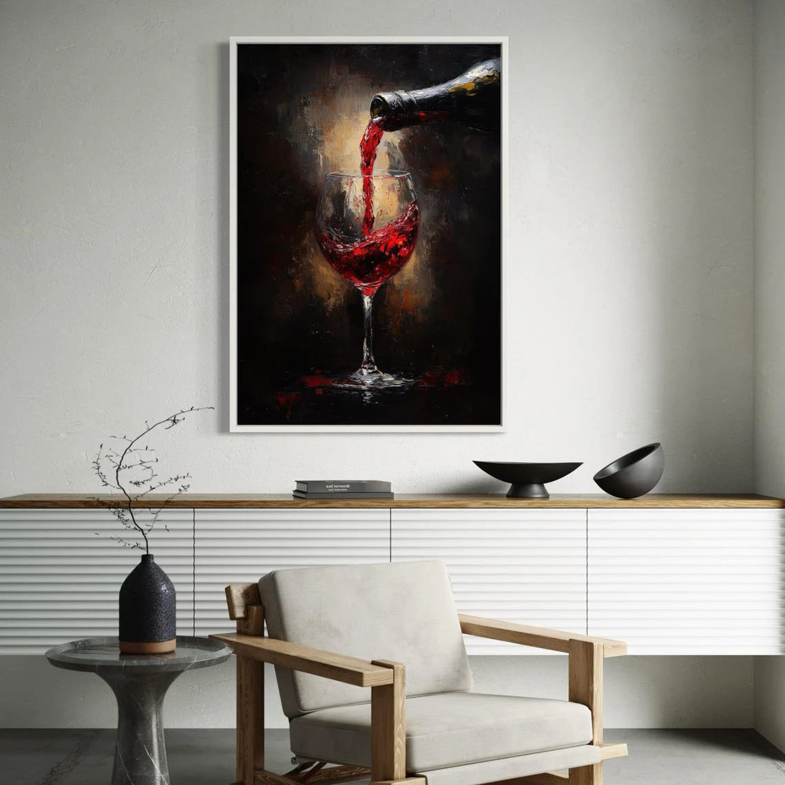 Pouring Red is a striking tribute to the elegance (and deliciousness) of wine. The deep red colors and dramatic contrasts create a painting that is both bold and refined, making it a stunning addition to your living or dining space.