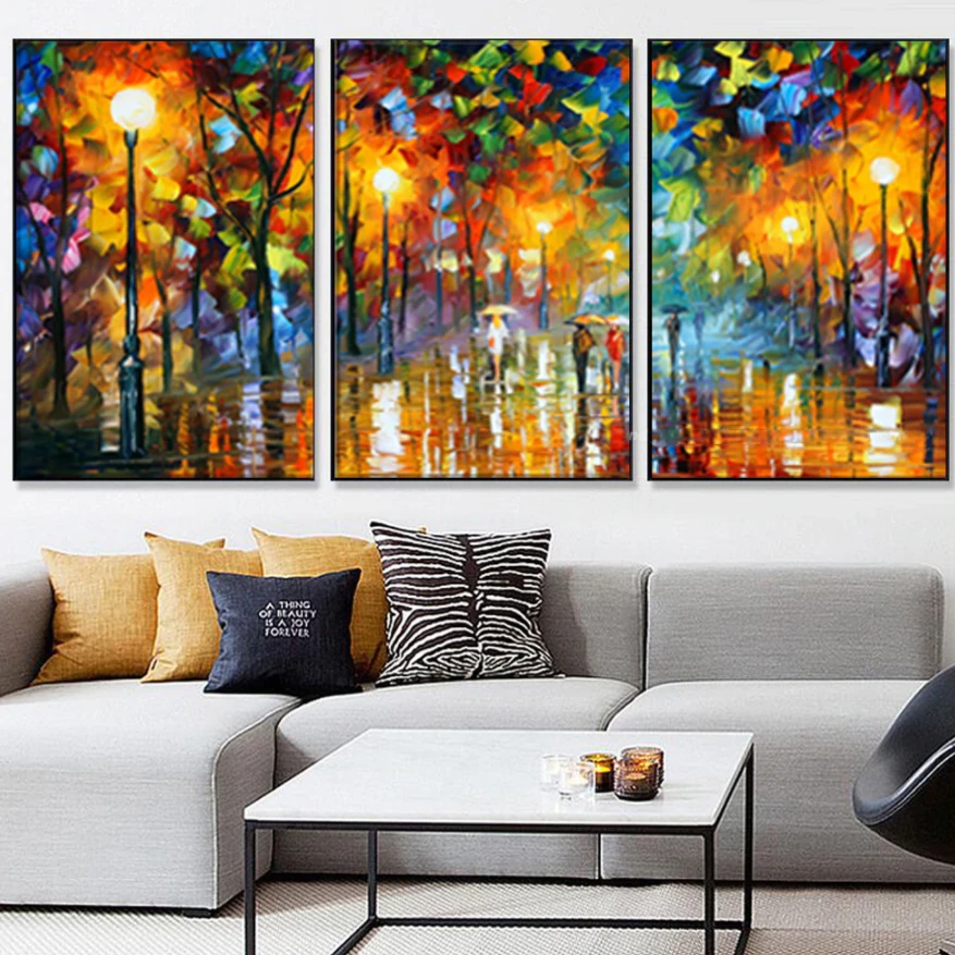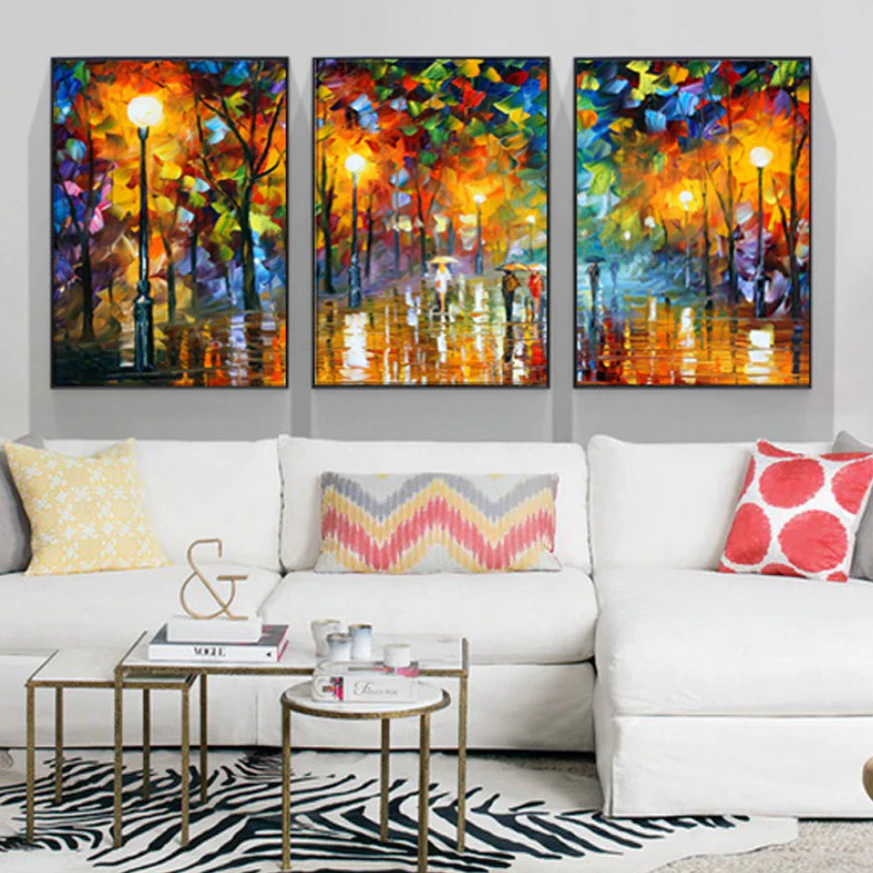 This three-piece ‘Promenade’ canvas set is perfect for capturing the excitement and energy of city life..The vibrant colors create a sunning atmosphere, making this an eye-catcher for every room!
