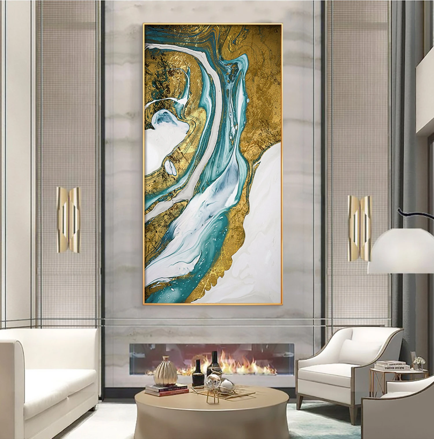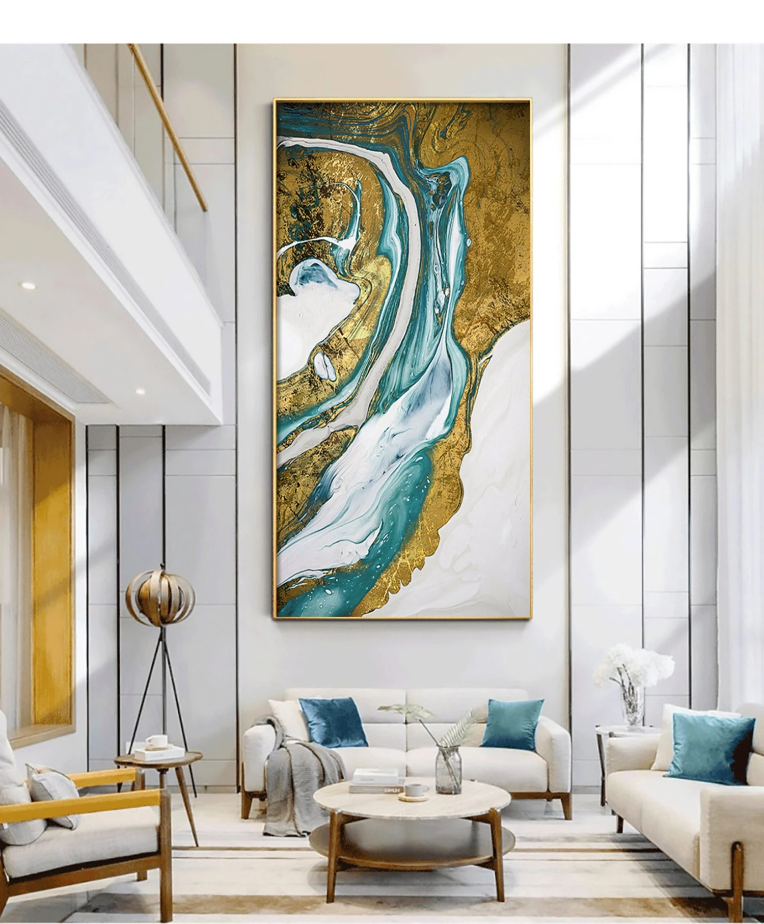 A dashing portrayal of a golden river with a clear white background. The river really pops out of this art piece because of the clever way the artist worked with contrasts. The flow of the river brings a sensation of warmth and elegance to any room.