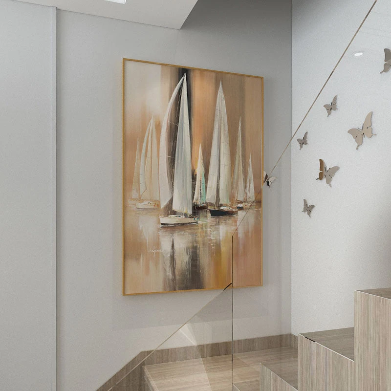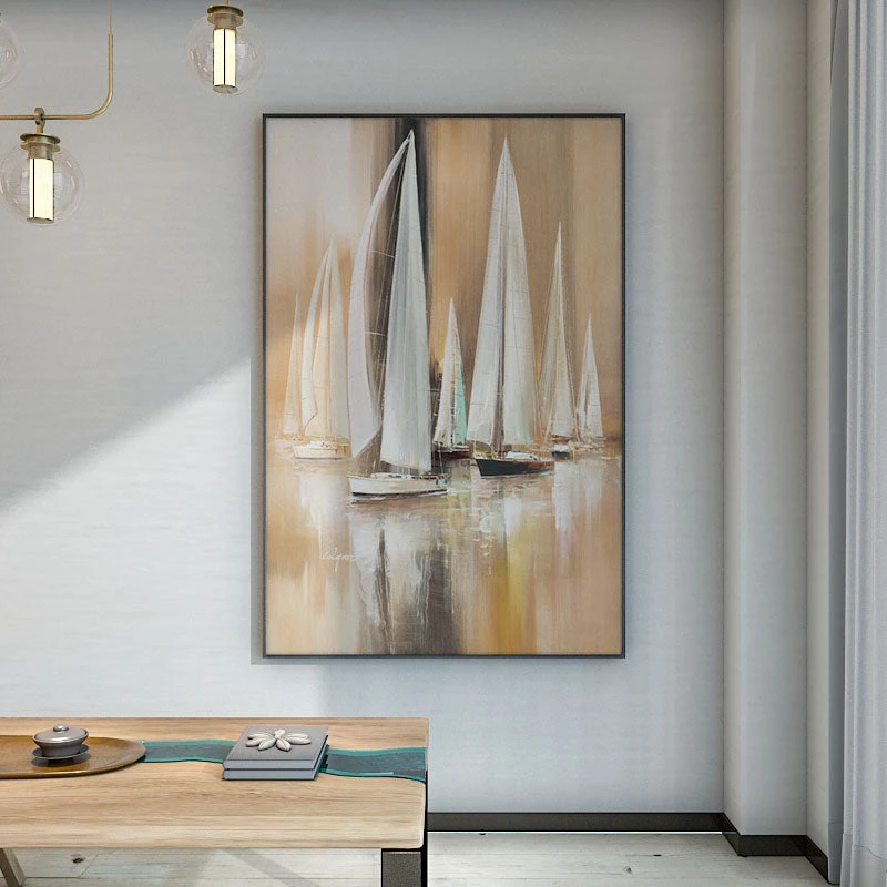 The painting Sail is a dreamy portrayal of sailing ships. The artist’s use of color and texture will definitely impress your guests! The composition is sure to appeal to anyone who loves the sea! This painting is sure to make any room look great!