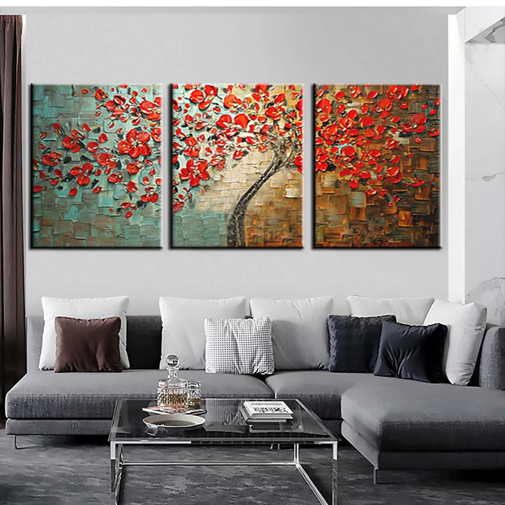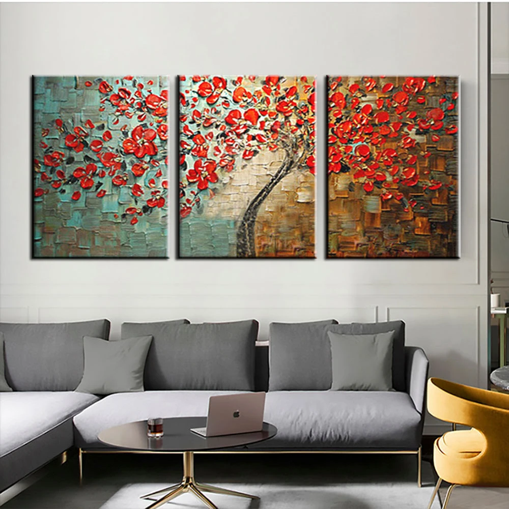 Like beautiful scarlet flowers in the prime of their bloom, this wondrous canvas set truly opens up to you! A special technique is used to give the set a more lively feel. With its dynamic composition, this flowery set is a great addition to any home interior.