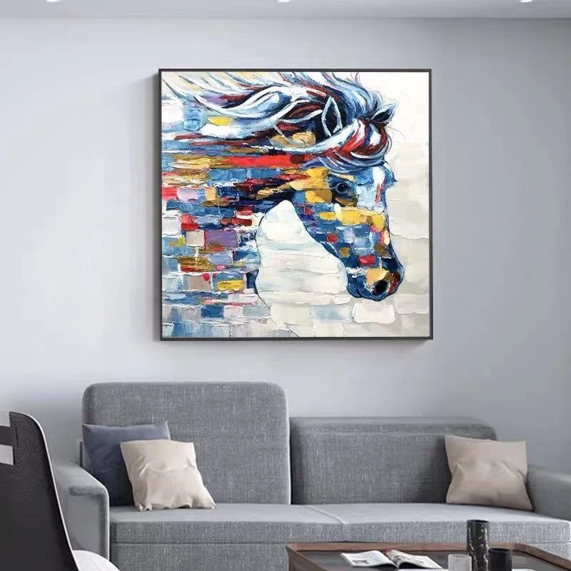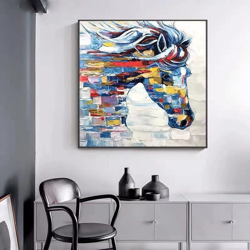 Dashing with determination and vibrant elegance, Seabiscuit is more than just a ‘good horse’. Loaded with lively colours, this handmade art piece compliments any room or space!