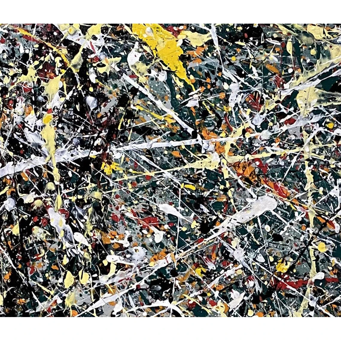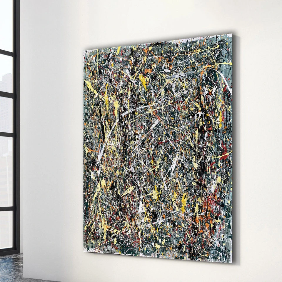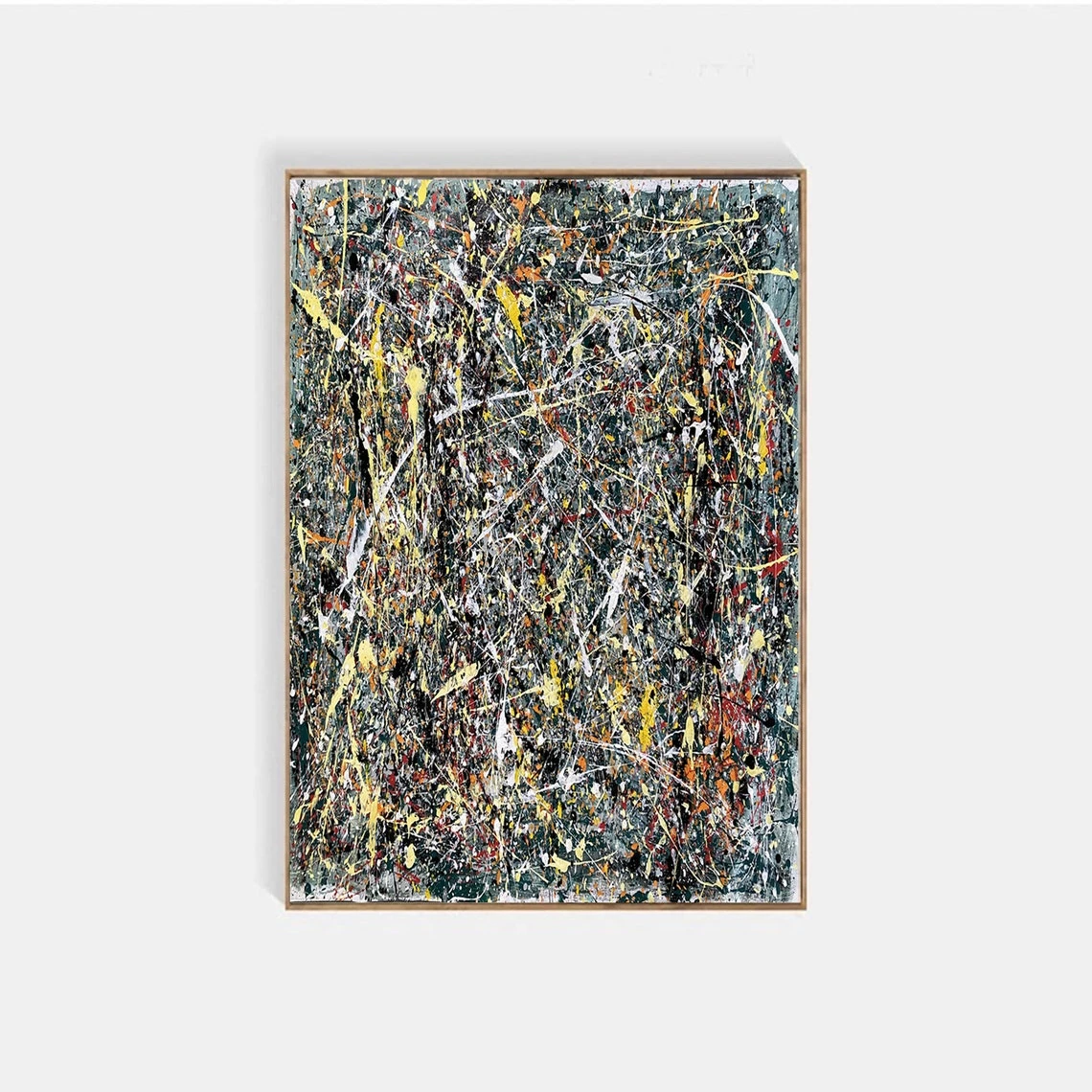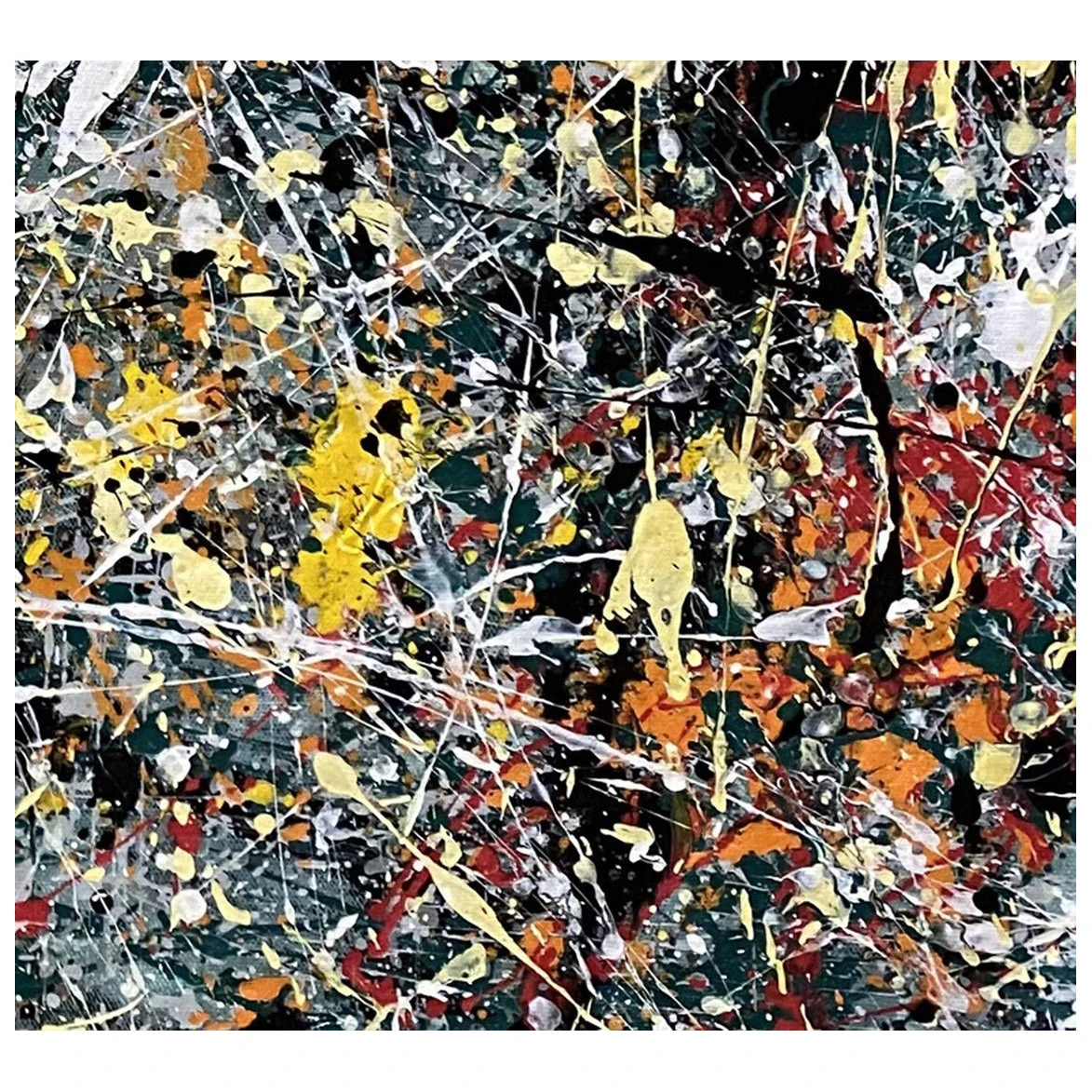 Pollock’s inspired ‘Solemn’ captures the quiet energy of reflection through its intricate web of colors and movement. This painting balances bold strokes with deep thought, making it a striking yet meditative addition to your space.