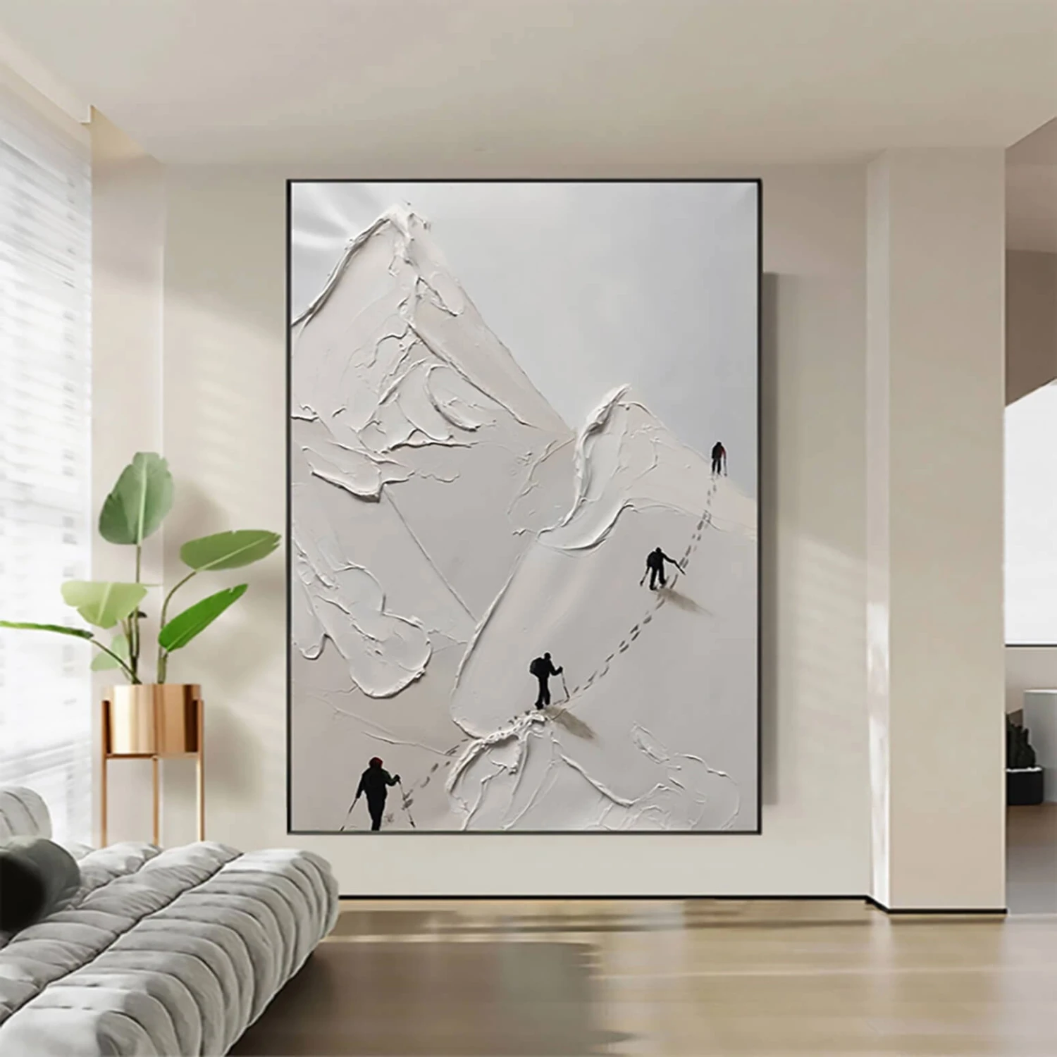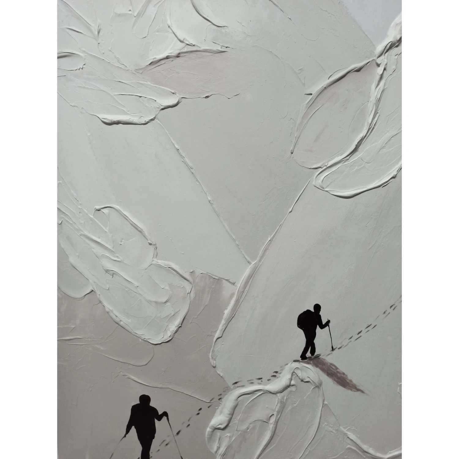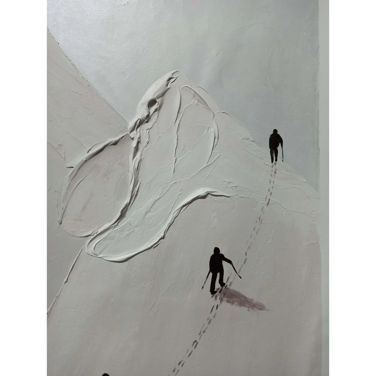 Look at these brave hikers conquering a massive mountain! This special artwork displays the journey of a lifetime in a unique style. The different painting styles used in this composition, make the hikers truly come alive. Making this painting a rich addition to any space or room!