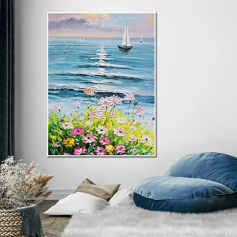 Immerse yourself in The Floral Coast, a vibrant painting that blends the freshness of wildflowers with the calming rhythm of the ocean. It’s a scene that instantly brightens any room while inviting you to relax and breathe. A perfect escape from the hustle and bustle of busy life.