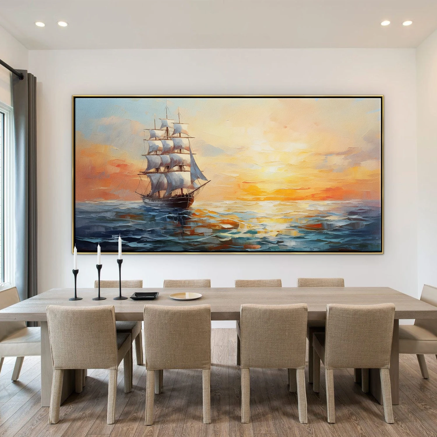 This stunning piece celebrates liberty’s call on the open ocean. The towering ship, a symbol of freedom, invites you to embark on an epic journey across vast, open ocean to explore its secrets and riches.