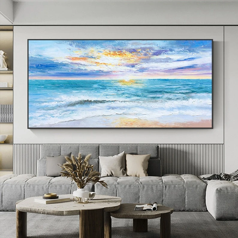Experience the beauty and power of the ocean with The Roaring Sea. This painting’s dynamic waves and vibrant colors bring the essence of the sea into your home, creating a serene and captivating atmosphere.