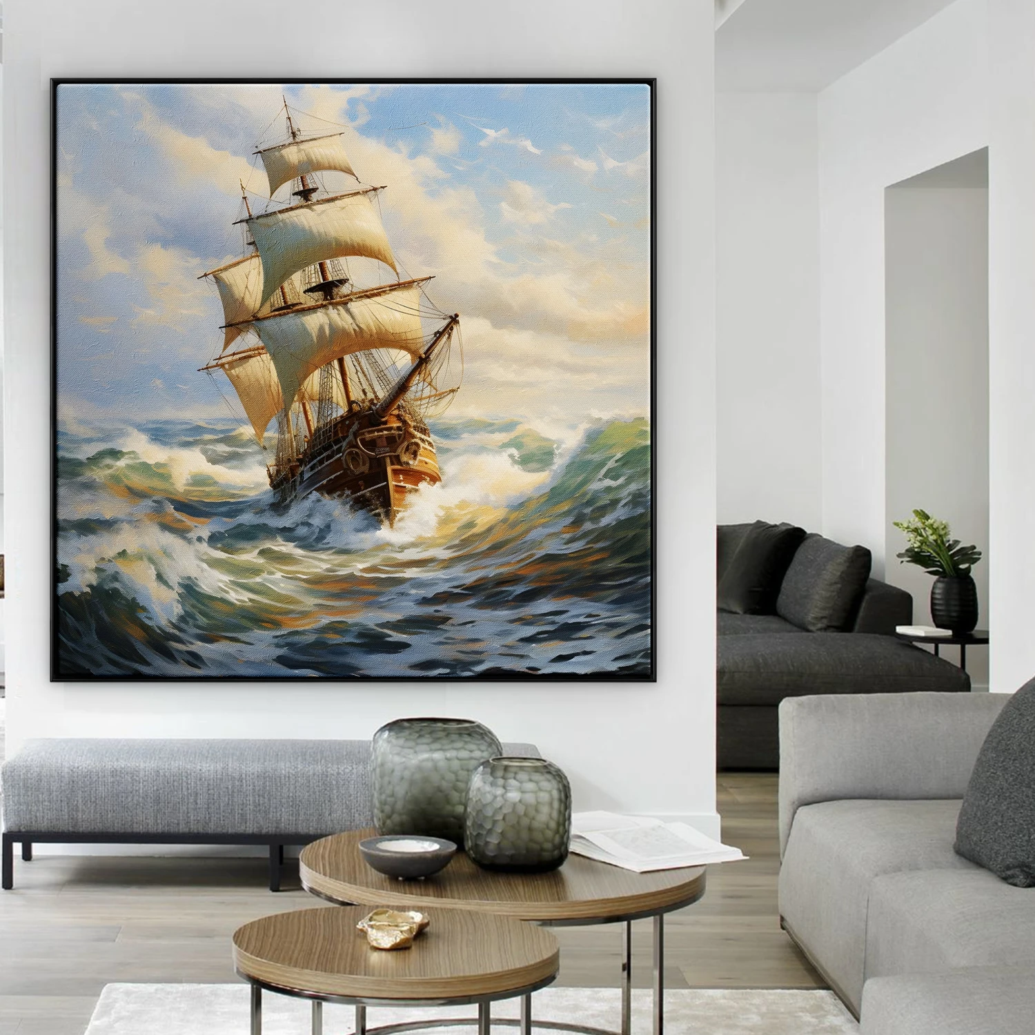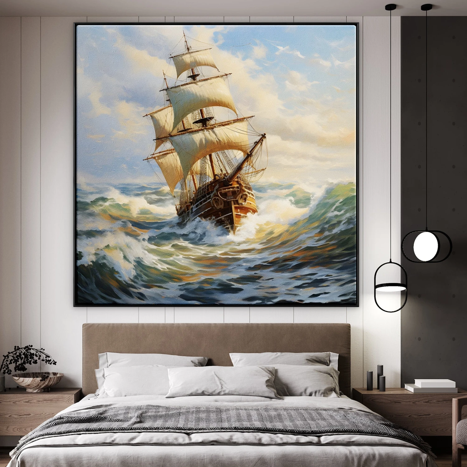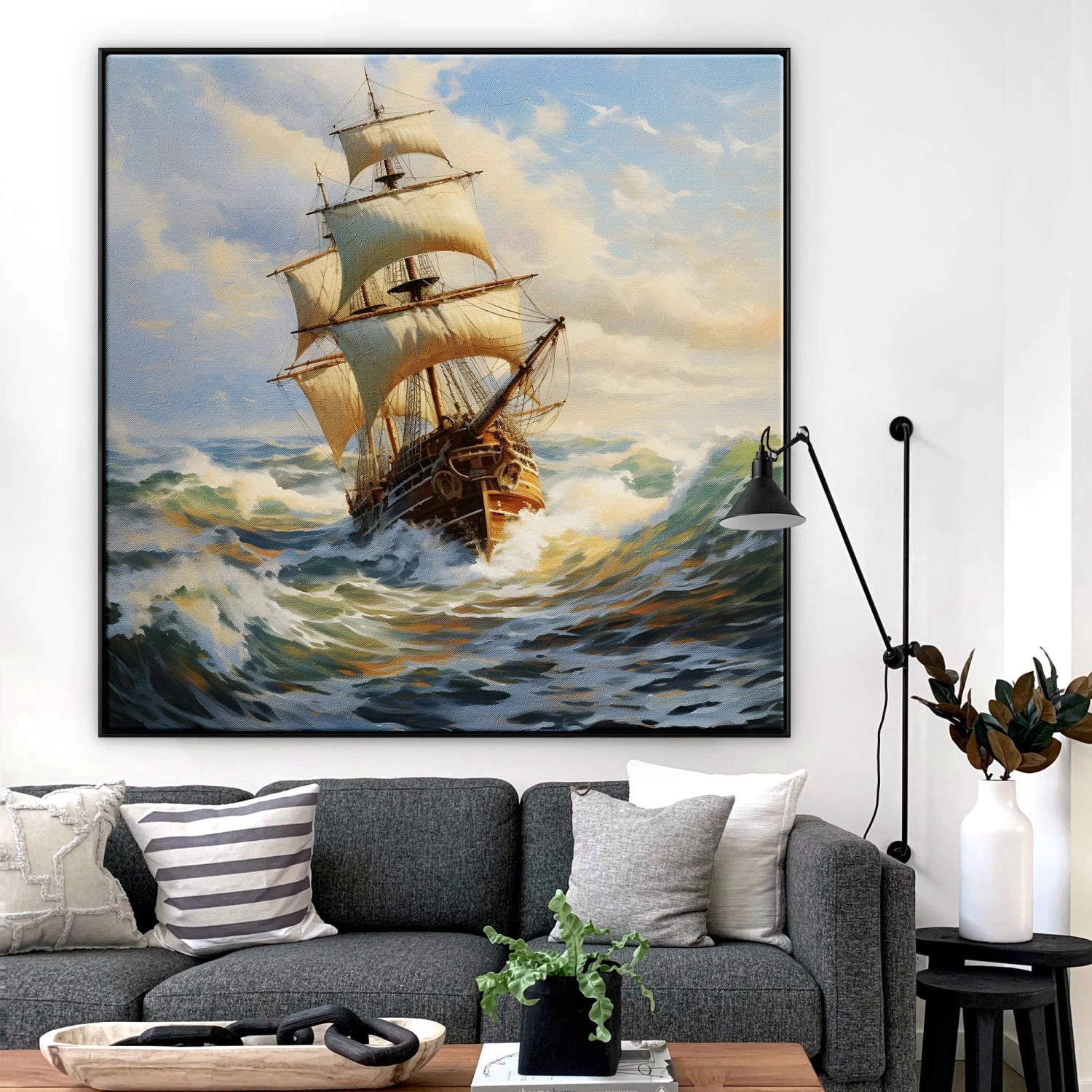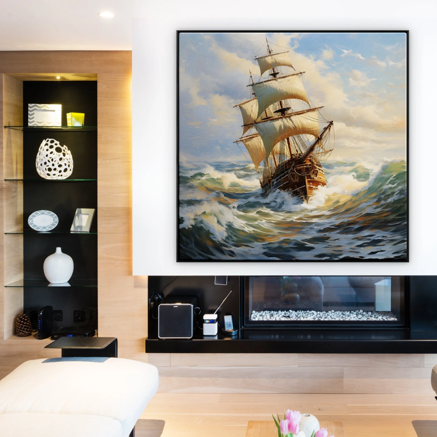 Prepare for an epic journey in ‘The White Phantom.’ With captivating realism, this majestic ship sails through the tumultuous sea, creating a painting that narrates tales of adventure, strength, and valor.