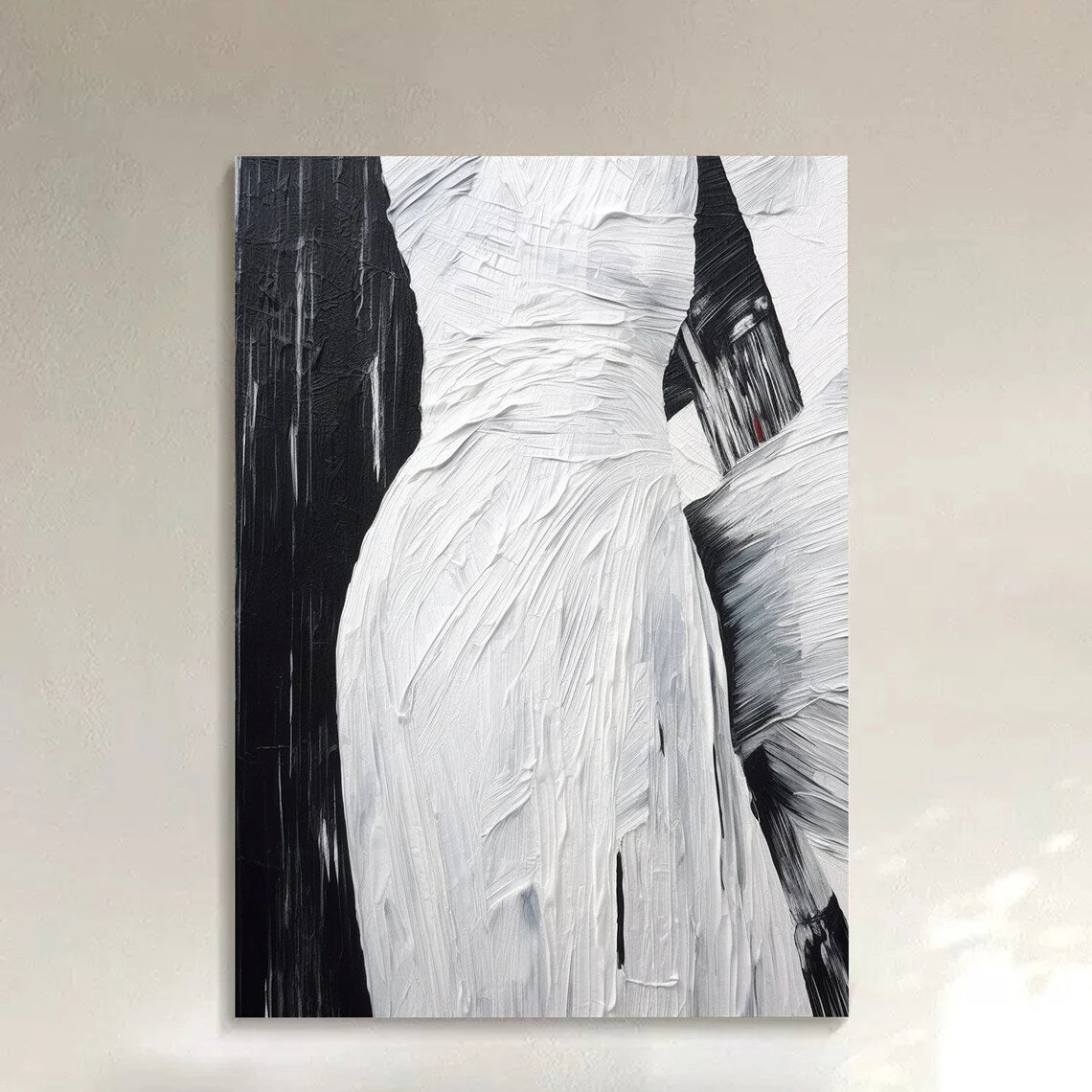 Wrapped in White’ is elegance frozen in time. The textured brushstrokes bring depth and motion to the ethereal folds of a stunning white gown. Perfect for adding grace and sophistication to any room, this piece is sure to make an impression.