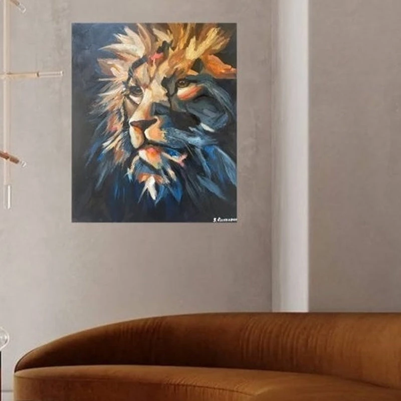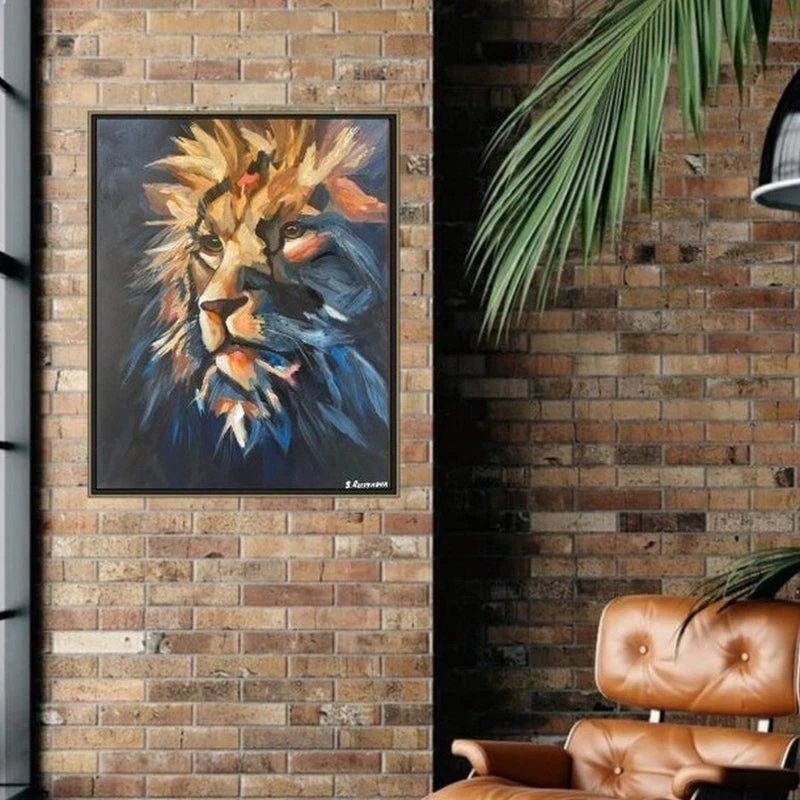 We’d like you to meet the true king of the jungle, Zarina! His friendly eyes show a lifetime of experience and leadership. With just a few brushstrokes his mighty manes are portrayed majestically, making it a beautiful addition to any home interior!